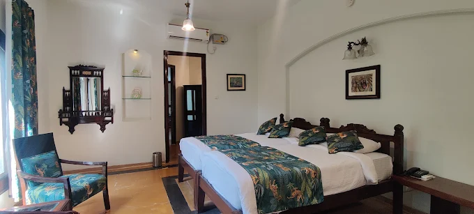 Rooms: 12 luxurious, spacious, well appointed suites, with wall size windows overlooking the forest. Mini refrigerator,tea/coffee maker in suite. Bay windows, working table, day bed, private terrace and open showers for the adventuorous souls. Attached large bathroom with bath and a shower cubicle, twin